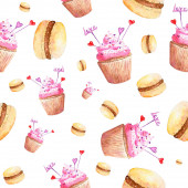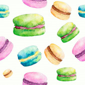 Płynny wzór z akwarelowymi ilustracjami ciastek i makaronów na białym tle. Ręcznie czerpane