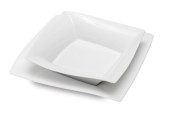 biały pusta filiżanka z talerzykiem kwadrat, widok z góry