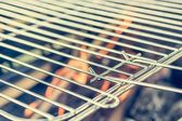 Zbliżenie nowy metalowy ruszt grillowy. Czysta siatka. Narzędzia piknikowe.