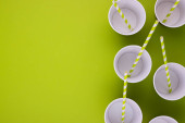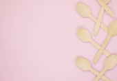 Jednorazowe łyżki wykonane z drewna bambusowego i plastiku na zielonym tle. Łyżki wykonane z drewna i tworzywa sztucznego ułożone są w kole. Koncepcja zero odpadów. Zachowanie czystości przyrody
