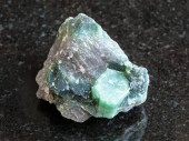 zbliżenie próbki minerałów naturalnych z kolekcji geologicznej - surowa skała apatytowa na czarnym granitowym tle