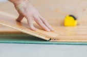 Człowiek europejski pracujący w domu - podłoże polistyrenowe do układania laminatów