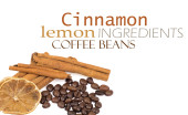 kawa, cynamon, cytryna i słodycze nad białym