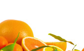 Witamina C przeciążenia, stosy pociętego owoców na białym tle