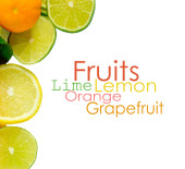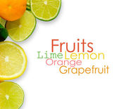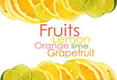 Witamina C przeciążenia, stosy pociętego owoców na białym tle
