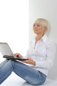 Zdjęcie "blondynka z komputerem" może być wykorzystywane do celów osobistych i komercyjnych zgodnie z warunkami zakupionej licencji Royalty-free. Obraz jest dostępny do pobrania w jakości wysokiej rozdzielczości do 5760x3840.