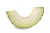 Organiczne plasterki melona japońskiego bez nasion na białym, izolowanym tle ze ścieżką wycinania. Dojrzały melon melonowy z rosy miodowej ma słodki smak i soczyste, orzeźwiające lato. Koncepcja świeżych owoców.
