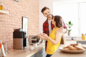 szczęśliwy młody para gotowanie w kuchnia