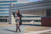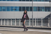 piękna dziewczyna pozuje z czerwonym płaszczu