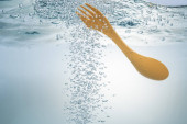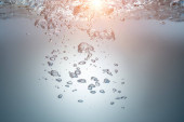 Globalny problem środowiskowy, zanieczyszczenie środowiska, odpady w morzach i rzekach. Plastikowe kubki pod wodą.