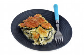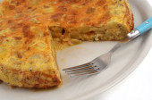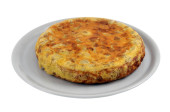 Tortilla gotowane w patelni zbliżenie na białym tle