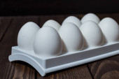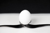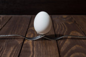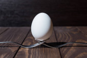 jajko na ciemnym tle. białe jajko na ciemnym drewnianym tle