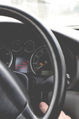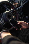 mężczyzna z ręką na kierownicy samochód, widok z bliska