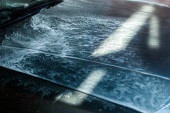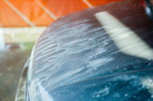 męski płyn do wycierania dłoni z serwetką ze skórzanego siedzenia w salonie samochodowym, widok z bliska