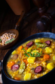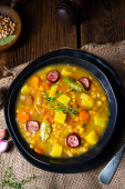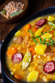 Zdjęcie "Zupa grochowa z boczkiem i kiełbasą" może być wykorzystywane do celów osobistych i komercyjnych zgodnie z warunkami zakupionej licencji Royalty-free. Obraz jest dostępny do pobrania w jakości wysokiej rozdzielczości do 5760x3840.