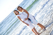dwie siostry zabawny na plaży.