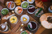 Zdjęcie "Top widok anonimowych ludzi z napojów na wynos biorąc pyszną pizzę z pudełek siedząc przy stole podczas znajomych zbierających się w przytulnym domu" może być wykorzystywane do celów osobistych i komercyjnych zgodnie z warunkami zakupionej licencji Royalty-free. Obraz jest dostępny do pobrania w jakości wysokiej rozdzielczości do 5760x3840.