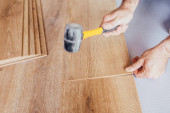Mocowanie blokady z tworzywa sztucznego młotkiem gumowym - Sekwencja technologicznych metod układania i montażu wykładzin pływających - laminat - prace profesjonalne