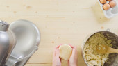 Ciasto mieszające do naleśników - rama pionowa - dodanie mleka, jaj, mąki, cukru