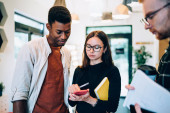 Zdjęcie "Afroamerykanie zajęci robotnikami wykonującymi papierkową robotę i robiącymi notatki podczas rozmowy o strategii marketingowej firmy przy stole biurowym" może być wykorzystywane do celów osobistych i komercyjnych zgodnie z warunkami zakupionej licencji Royalty-free. Obraz jest dostępny do pobrania w jakości wysokiej rozdzielczości do 5760x3840.