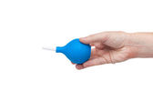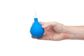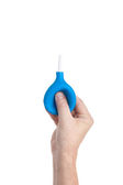 chemiczne probówki niebieski substancji w ręku na w tle