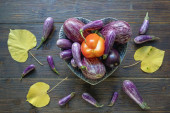 Warzywa. Jasne pomarańczowe marchewki na tle czarno-białych pasków