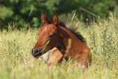 piękny brązowy konia arabskiego systemem kłus na pastwisko