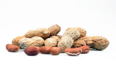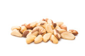 Stos orzechów organicznych Brazylii obrane izolowane na białym tle