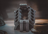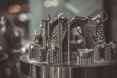 Obiekt drukowany na metalowym zbliżeniu drukarki 3D