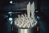 Obiekt drukowany na metalowym zbliżeniu drukarki 3D