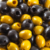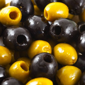 Czarne i zielone oliwki mieszają tło