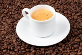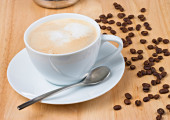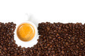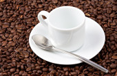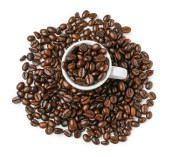 Ziarna kawy i filiżanki