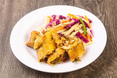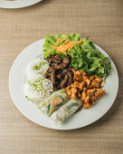 Wietnamski Vermicelli Noodle Bowl z krewetkami i sajgonki