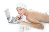 Zdjęcie "wesoły kobieta po kąpieli działa na laptopie" może być wykorzystywane do celów osobistych i komercyjnych zgodnie z warunkami zakupionej licencji Royalty-free. Obraz jest dostępny do pobrania w jakości wysokiej rozdzielczości do 5760x3840.