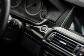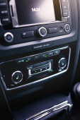 Klimatyzacja samochodowa zamyka dziurę. Deska rozdzielcza samochodu.