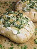 Świeże smaczne domowe pieczywo chlebowe z pietruszką na drewnianym tle