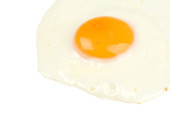 Surowe jajko izolowane na białym tle widok góry z ścieżką wycinania