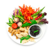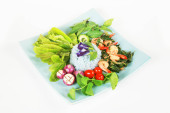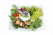 Zdjęcie "Tajski pikantne krewetki wklej chili sos zanurzający z makreli grill ryby i świeże carving vagetable Thai stylu.Najlepsze popularne jedzenie w kuchni tajskiej, zdrowe jedzenie ealthy lub dietfood top view" może być wykorzystywane do celów osobistych i komercyjnych zgodnie z warunkami zakupionej licencji Royalty-free. Obraz jest dostępny do pobrania w jakości wysokiej rozdzielczości do 5760x3840.