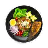 Zdjęcie "Fried Rice with Crab and Eggs Thai Jedzenie i azjatyckie Jedzenie fuzja styl ozdobić warzywa rzeźbione pomidory, Wiosna cebula widok z góry" może być wykorzystywane do celów osobistych i komercyjnych zgodnie z warunkami zakupionej licencji Royalty-free. Obraz jest dostępny do pobrania w jakości wysokiej rozdzielczości do 5760x3840.