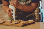 Domowej roboty tłuczone białko, kopia, przestrzeń. Białe jaja z bezy
