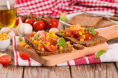 Zdjęcie "Friselle z pomidorami i mais." może być wykorzystywane do celów osobistych i komercyjnych zgodnie z warunkami zakupionej licencji Royalty-free. Obraz jest dostępny do pobrania w jakości wysokiej rozdzielczości do 5760x3840.