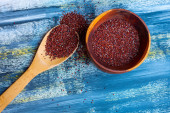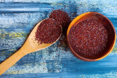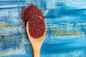 chia na niebieskim stole, superfood, zdrowe jedzenie