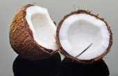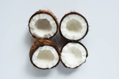 widok z góry świeże smaczne połówki kokosowe na białym tle