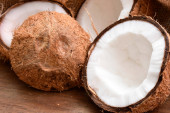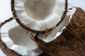zbliżenie widok smaczne połówki kokosowe na białym tle