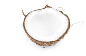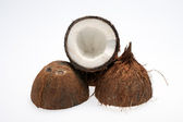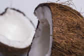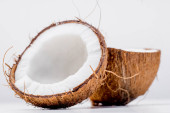 zbliżenie widok smaczne połówki kokosowe na białym tle