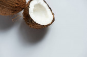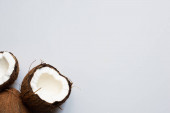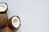 widok z góry świeże smaczne połówki kokosowe na białym tle