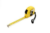 Żółta taśma pomiarowa izolowana na białym tle, 6in.