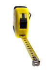 Żółta taśma pomiarowa izolowana na białym tle, 6in.