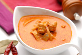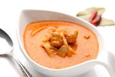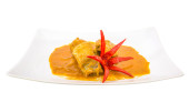Tradycyjne przekąski malajskie Roti Jala serwowane z kurczaka curry z ziemniakami na białym ceramicznym talerzu i miski