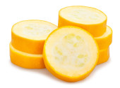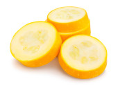 plastry żółtej ścieżki cukinii izolowane na białym